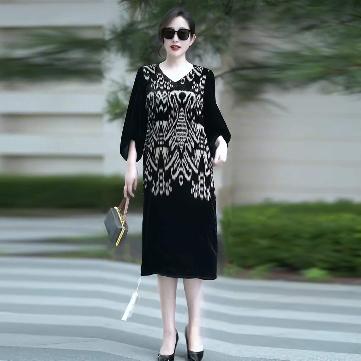 端庄大气中年妈妈长袖连衣裙2x024年新款春秋款女装大妈减龄气质