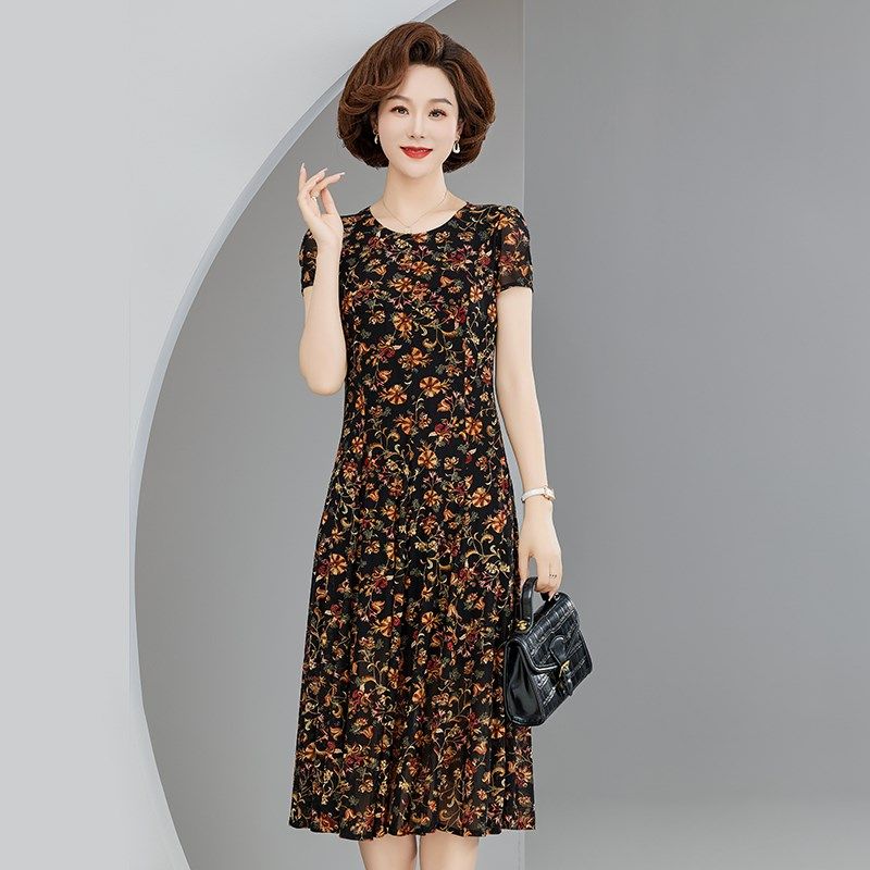 妈妈新款短袖连衣裙2025夏装新款中老年女装长裙子宽松洋气质大妈