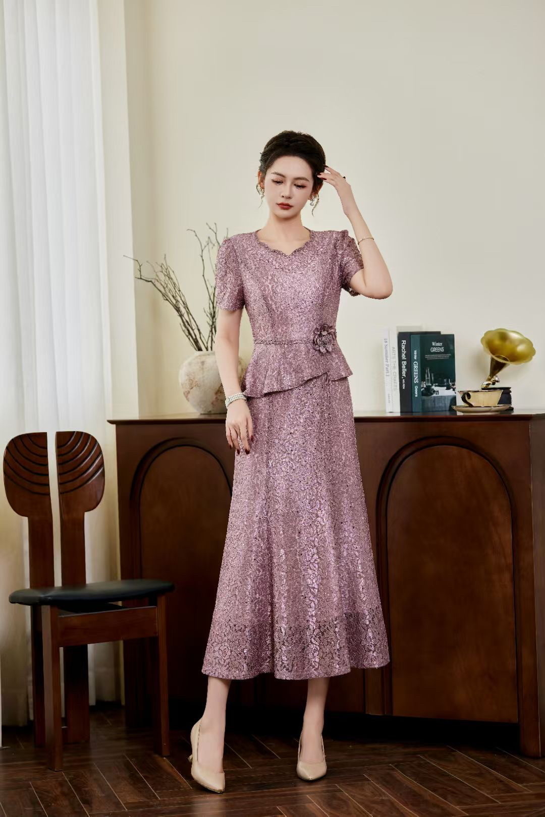 秀丽华服妈妈礼服夏婚宴连衣裙加肥加大妈妈装婚礼平时可穿遮肚子