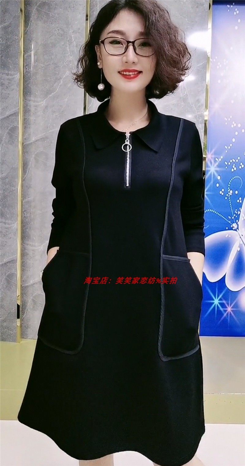 2022年秋冬衬衫领半拉链套头长袖中长款纯色加肥加大妈妈装连衣裙