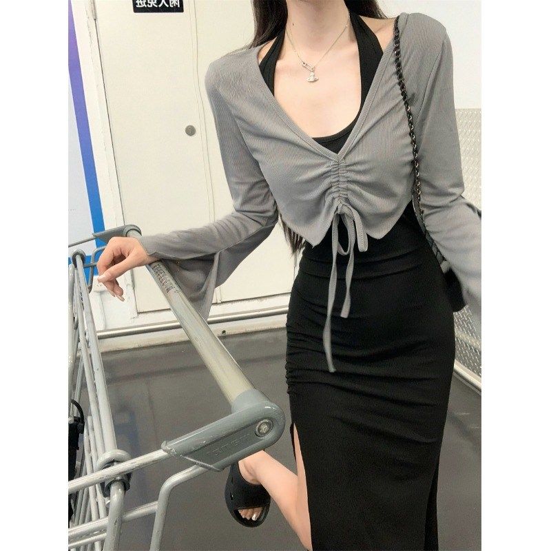 挂脖吊带连衣裙女内搭黑白拼色高级感性感包臀大妈黑色打底背心裙