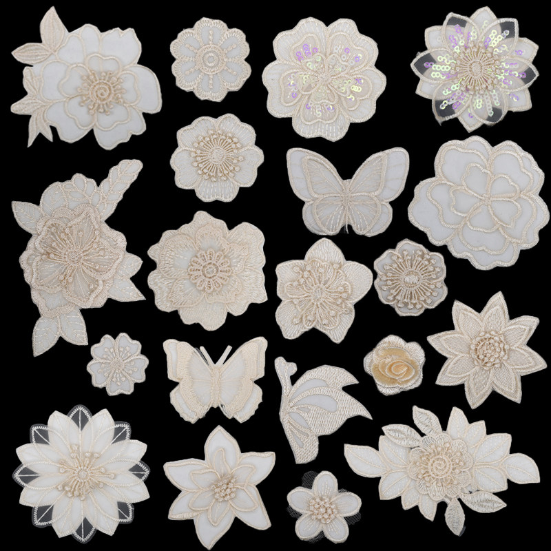 白色蕾丝补丁贴免缝自粘修补蚊帐裙子纱裙破洞欧根纱刺绣花朵布贴