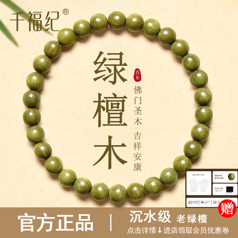 庆祥泰天然绿檀木手串沉香老山檀木质女男士文玩檀香佛珠盘玩手链