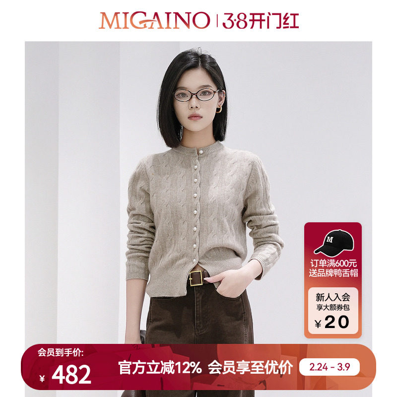 Migaino曼娅奴复古针织开衫春季新款气质长袖外套MO12JK204