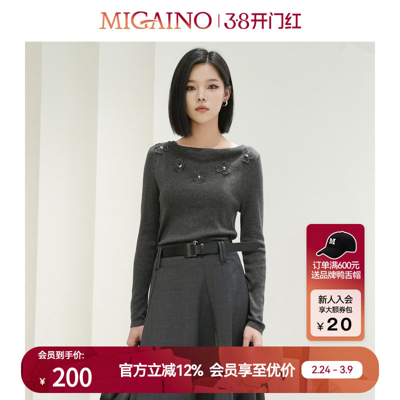 Migaino曼娅奴毛针织衫女2024早春新款设计感重工毛衣MO12WH249