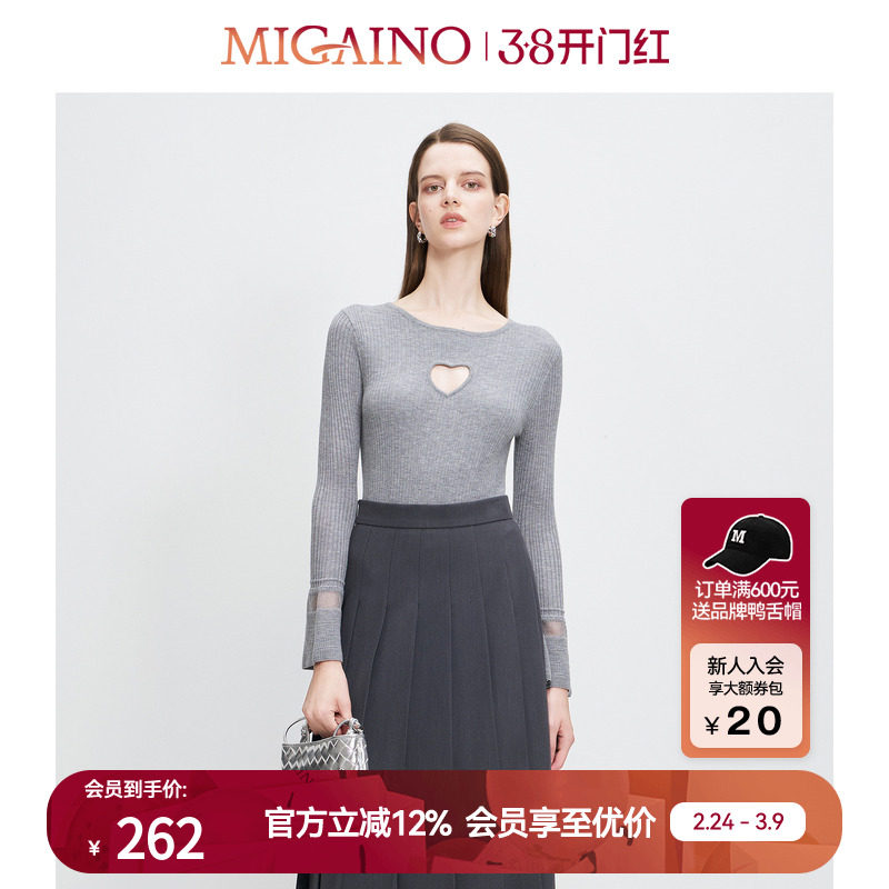 Migaino曼娅奴女装秋冬新款设计感减龄百搭爱心镂空针织打底衫