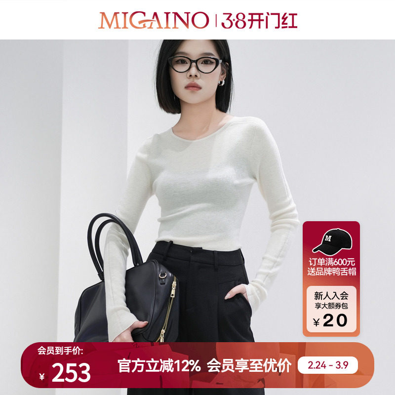Migaino曼娅奴女装秋冬新款圆领简约修身百搭打底针织衫羊毛上衣