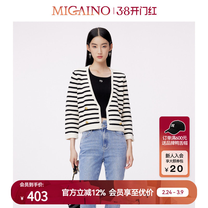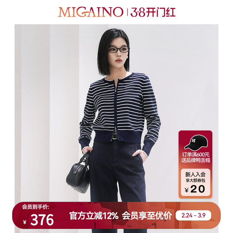 Migaino曼娅奴针织开衫女春季新款时尚条纹小个子上衣外套