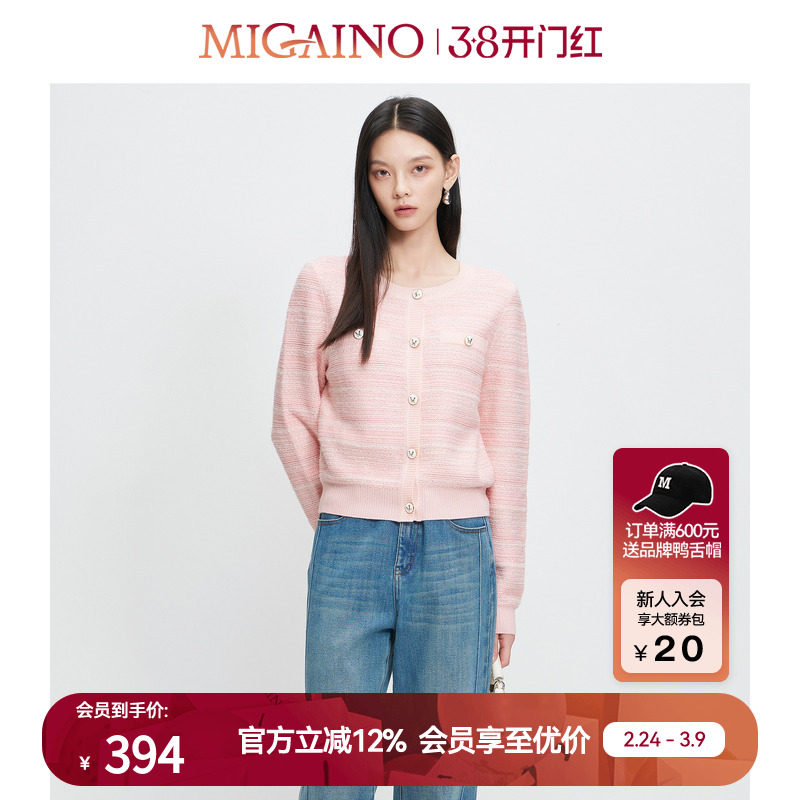 Migaino曼娅奴女装秋冬新款气质感减龄粉色百搭小香风针织开衫