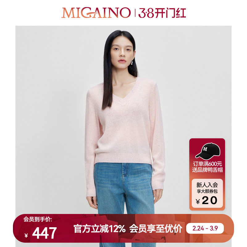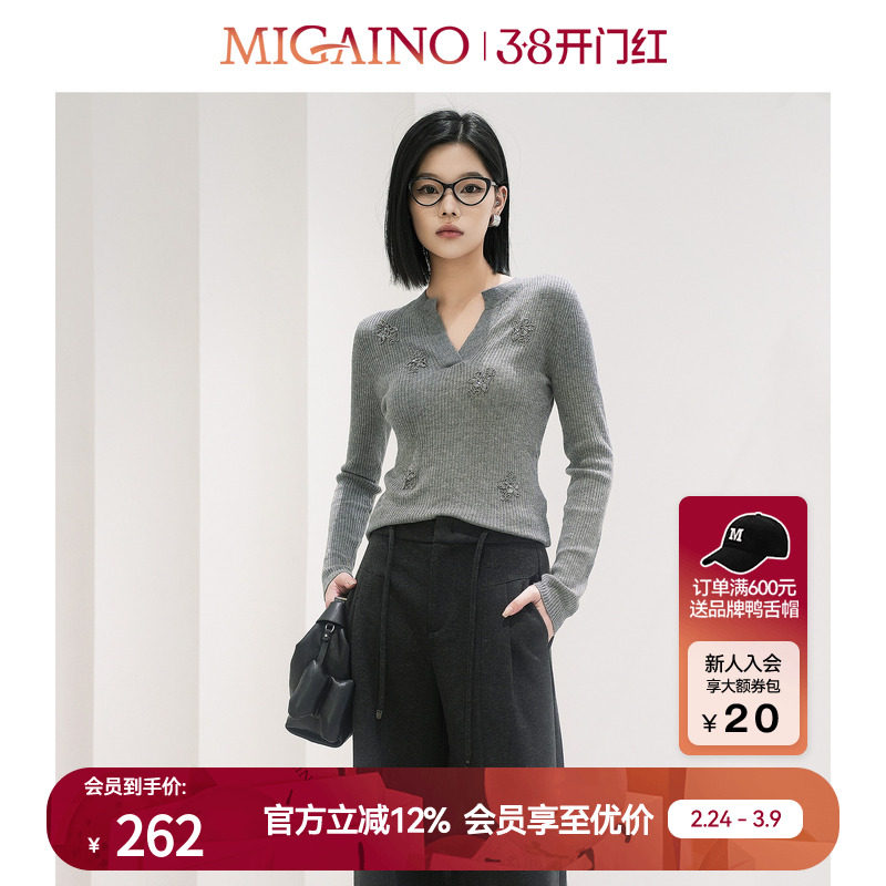 Migaino曼娅奴女装春秋新款气质感V领修身显瘦套头针织衫羊毛上衣