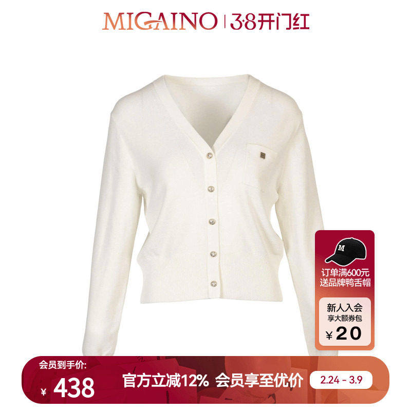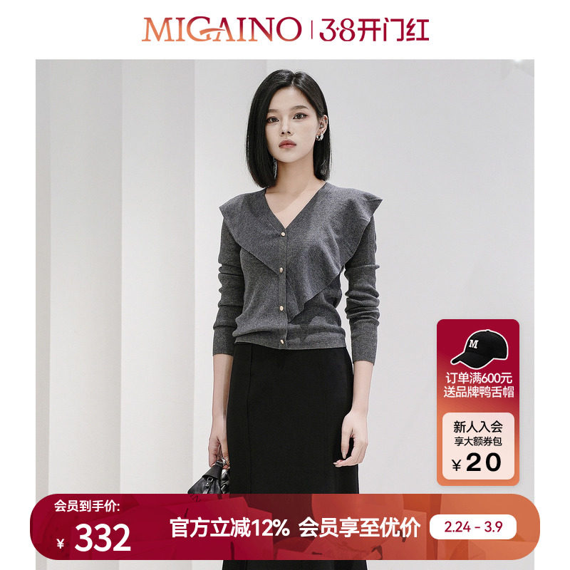 Migaino曼娅奴针织衫女2023年早秋新款优雅V领通勤开衫MN32JK239