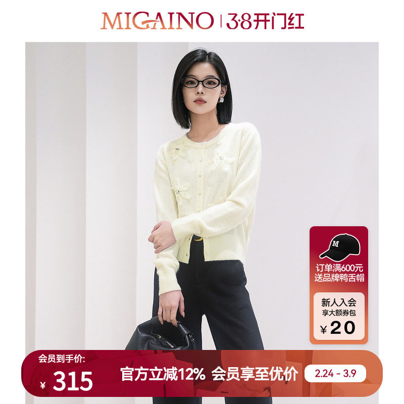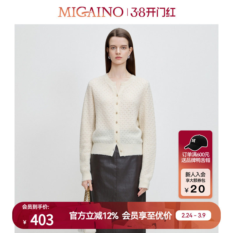 Migaino曼娅奴针织开衫女早春新款高级感气质外搭小个子上衣