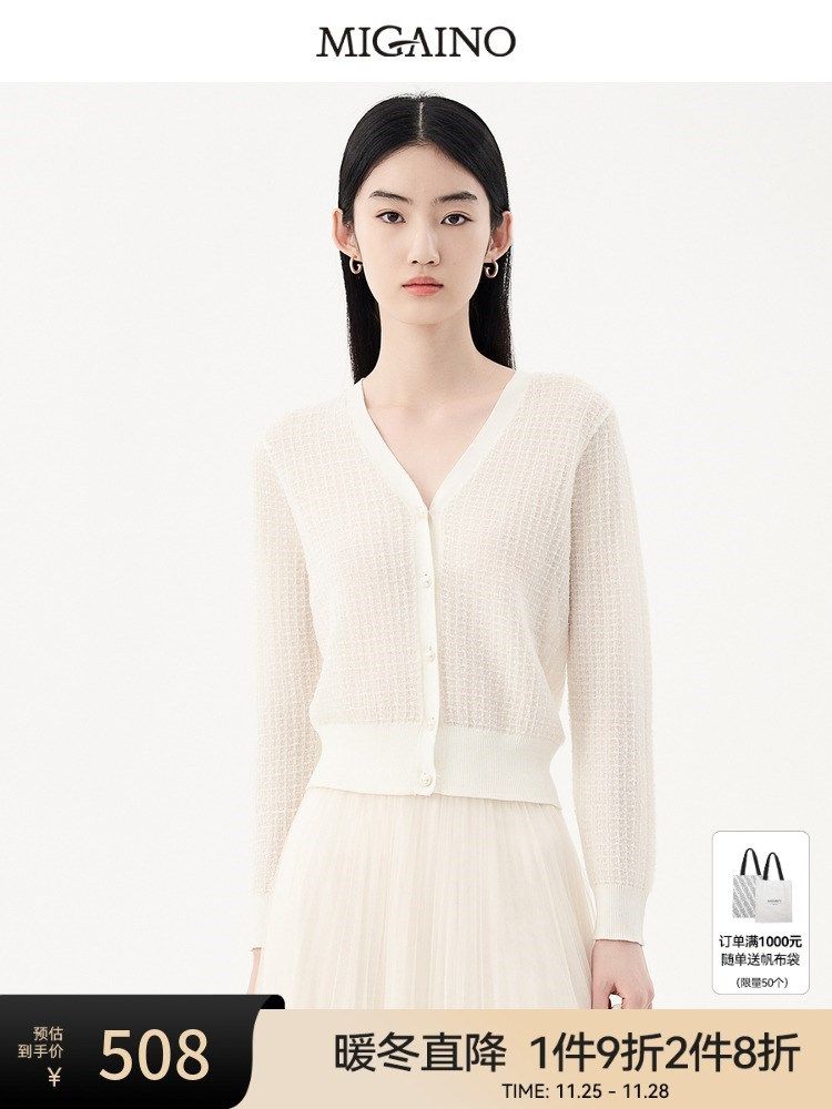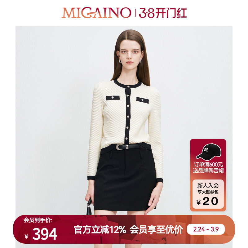 【商场同款】Migaino曼娅奴女装新款修身气质感针织开衫MP12JK219