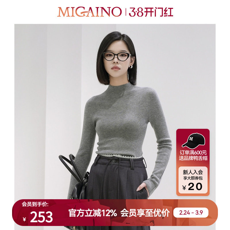 Migaino曼娅奴女装春秋新款气质半高领针织衫上衣羊毛内搭打底衫