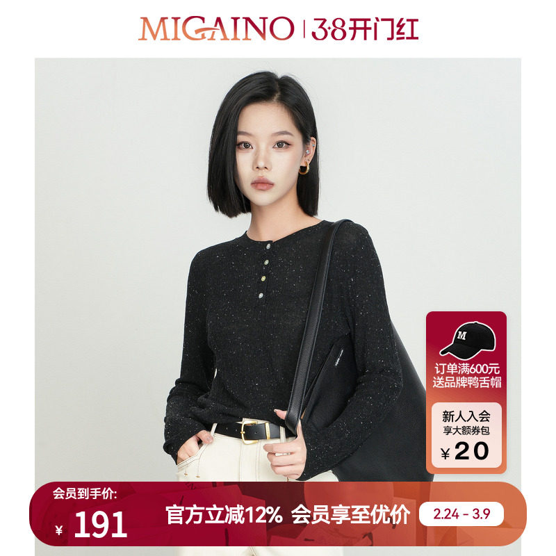 Migaino曼娅奴毛针织衫女2024早春新款时尚百搭亮丝毛衣MO12WH205