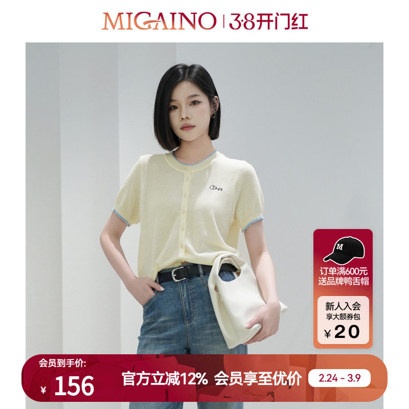 Migaino曼娅奴女装秋季新款简约淡盐系百搭短袖针织开衫MP32JK214