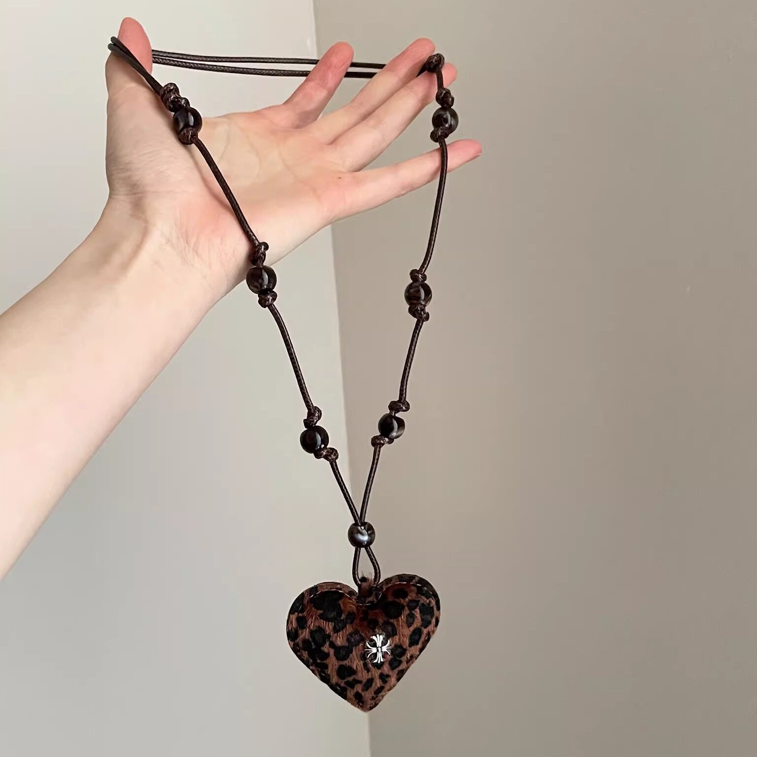 Vintage古着 Bohemian wood bead coconut shell love项链