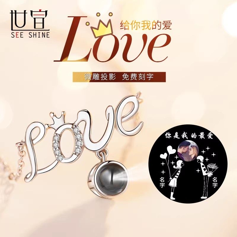 love项链女纯银潮网红情人节520送老婆女友情话投影定制纪念礼物
