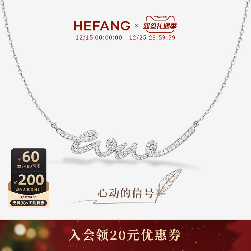 [新品]HEFANG何方珠宝LOVE项链锁骨链轻奢送女友圣诞礼物
