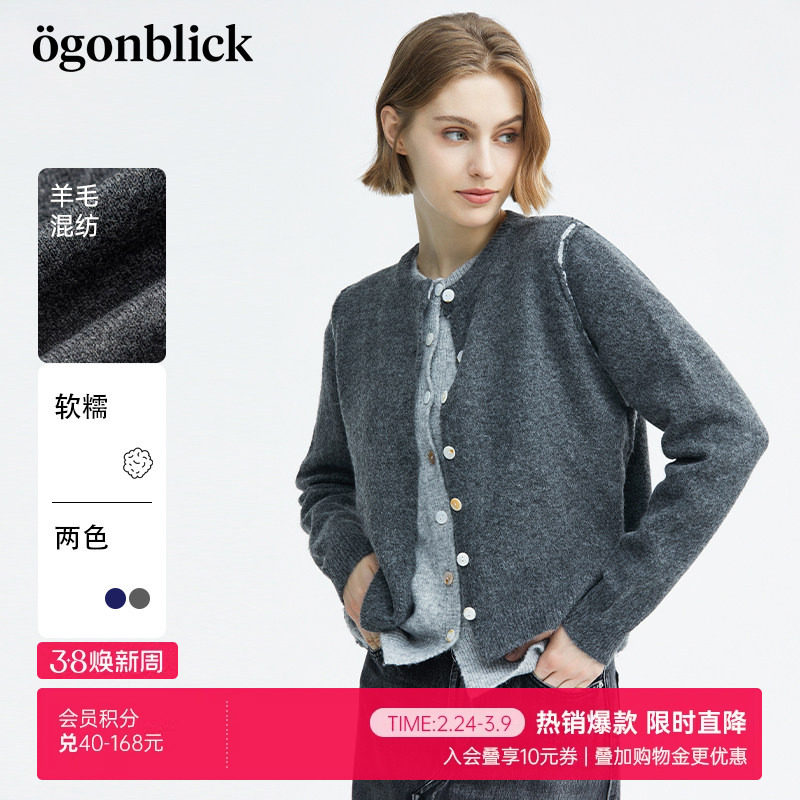 北欧时刻假两件短款针织开衫外套女26年春季季羊毛混纺深灰色毛衣