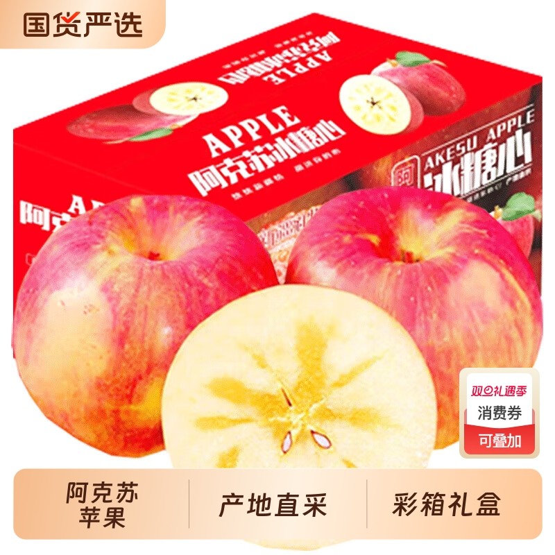 阿克苏苹果正宗新疆冰糖心红富士脆甜丑苹果当季生鲜水果礼盒送达