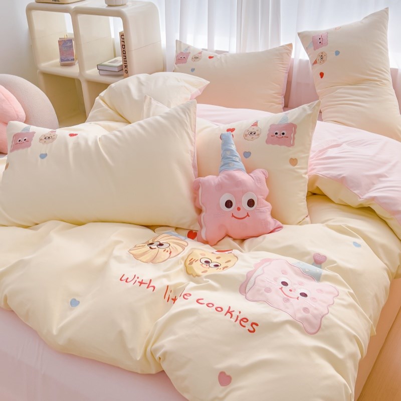 卡通曲奇刺绣全棉四件套春夏季公主风被套床单可爱少女心床上用品