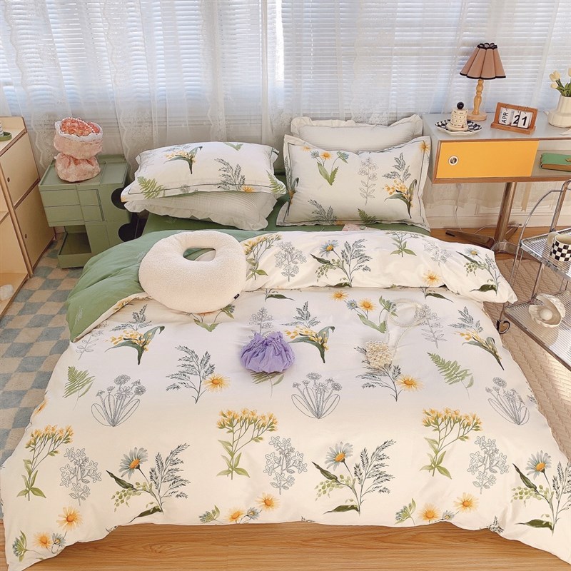 ins混搭四件套水洗棉全棉纯棉1.8床上用品春夏单人学生宿舍三件套