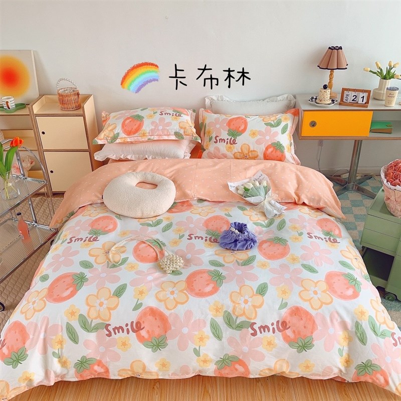 2025新款全棉四件套春夏季纯棉被套床单被罩三件套可爱床上用品