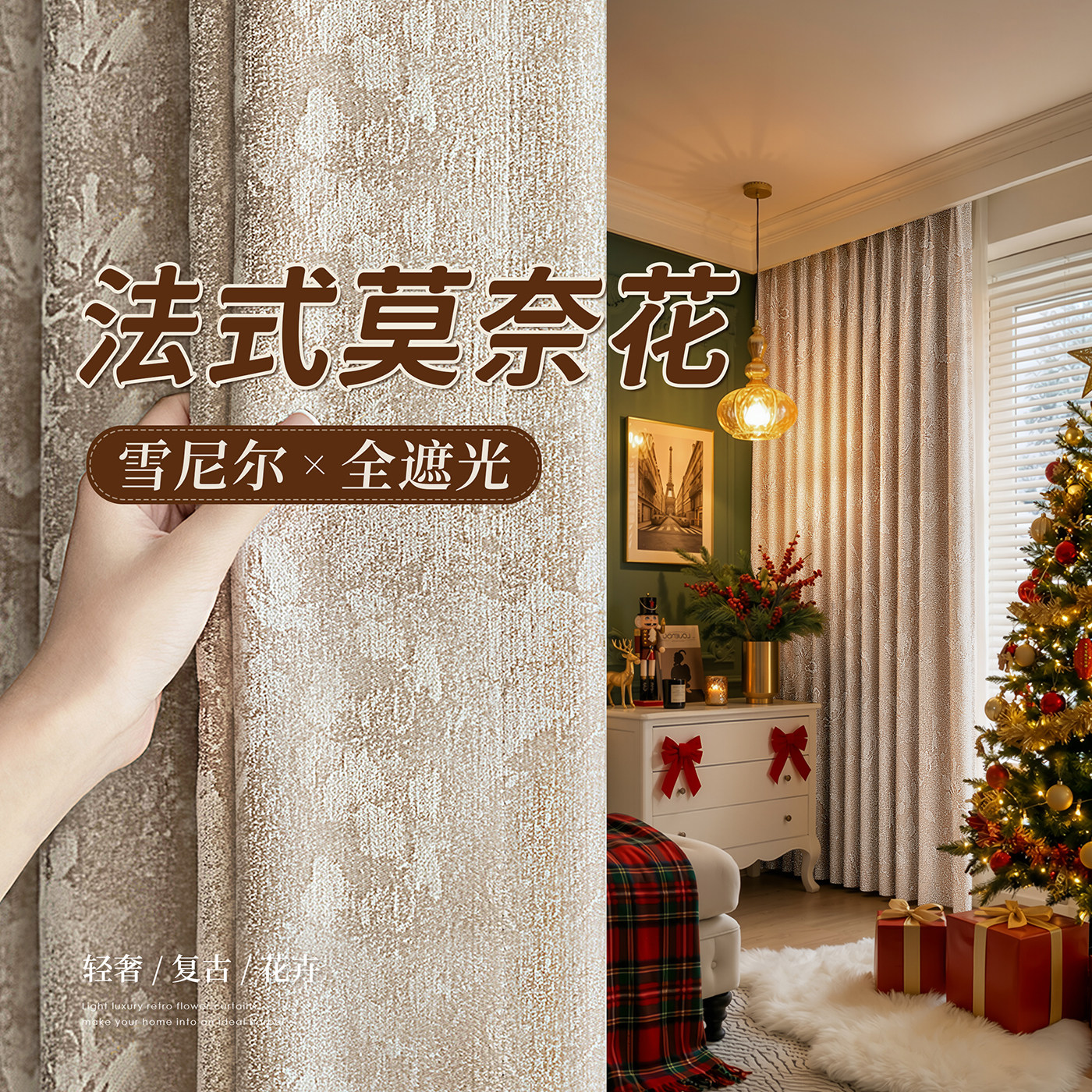 科创者2025新款雪尼尔定制窗帘卧室高级感客厅法式中古风花瓣窗帘