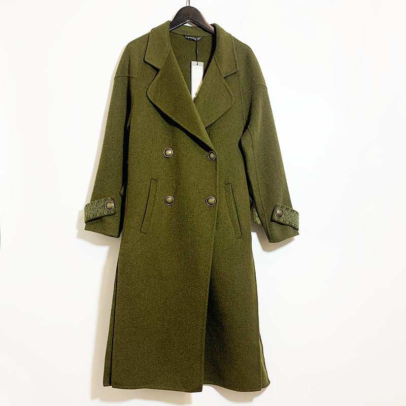 郁香菲双面呢羊毛大衣女中长款气质通勤冬季时尚刺绣系带毛呢外套