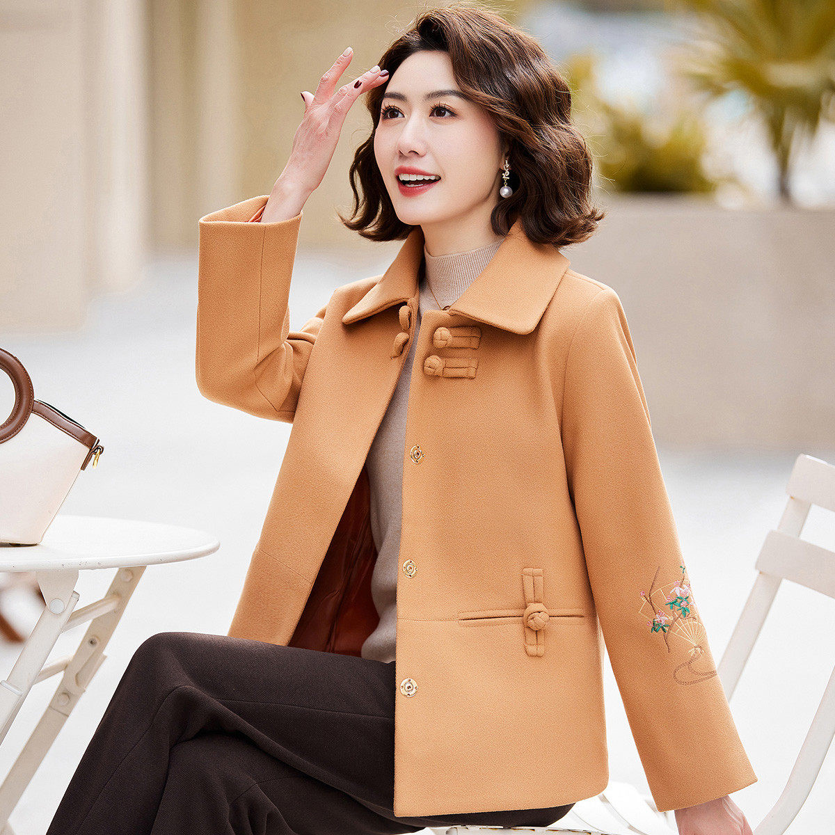 刺绣复古牛角扣双面羊绒大衣女短款高端秋冬羊毛妈妈国风毛呢外套
