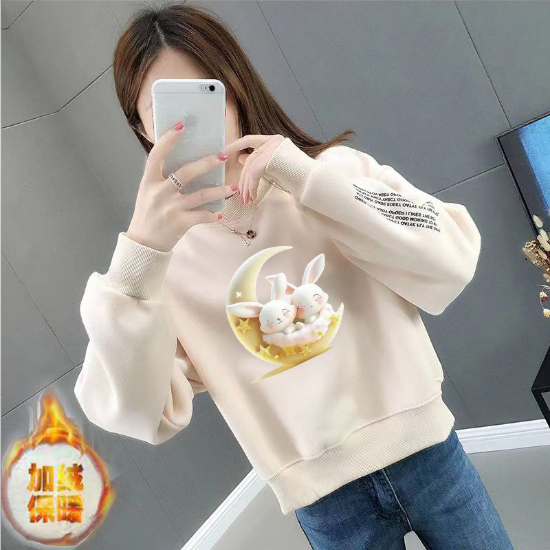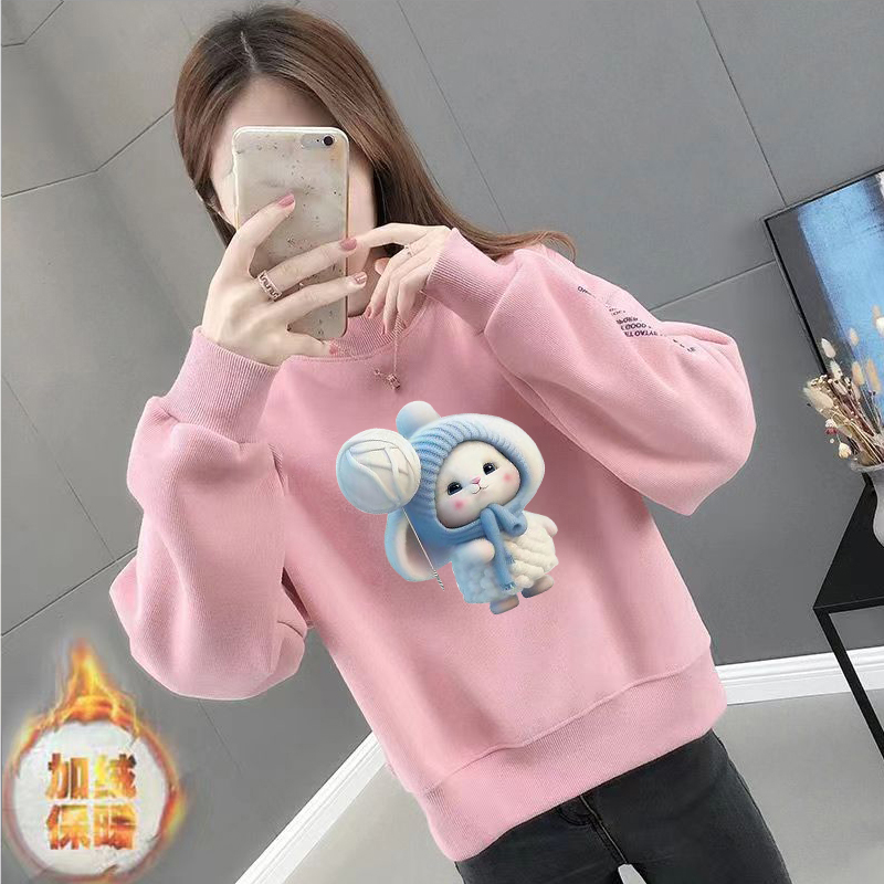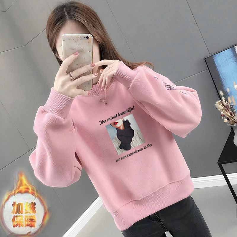 - 胖mm大码韩版秋冬新款宽松卫衣女加绒加厚中长款套头长袖上衣外套