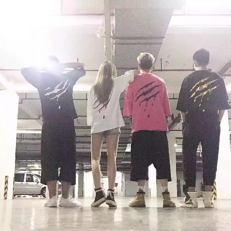 SuaMoment抓痕短袖宽松嘻哈情侣T恤正品后背爪痕血爪烫金七分袖夏
