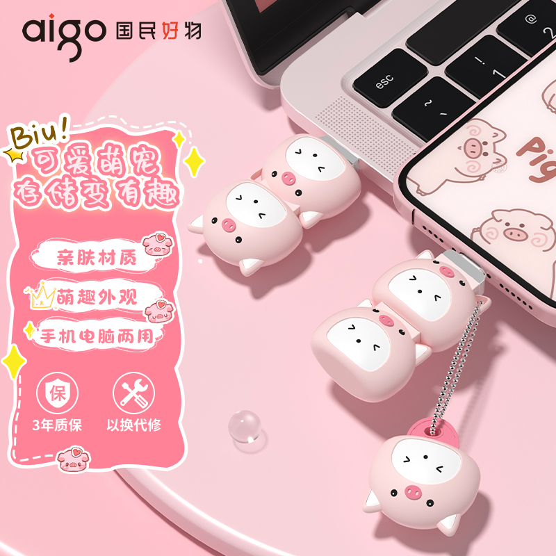 爱国者女生款卡通可爱u盘128g大容量高速USB3.2优盘手机电脑两用