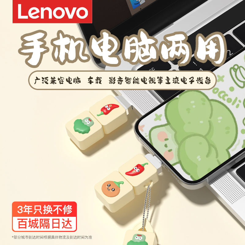 联想卡通u盘typec双接口iphone苹果15/16手机电脑两用高速大容量