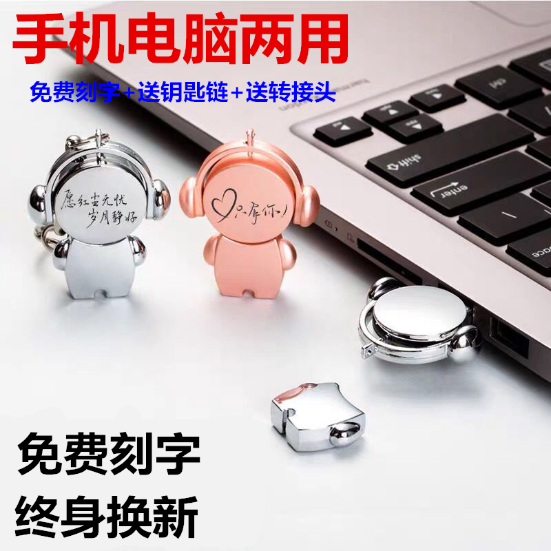 高颜值手机u盘64g大容量卡通创意手机电脑两用礼品个性定制优盘