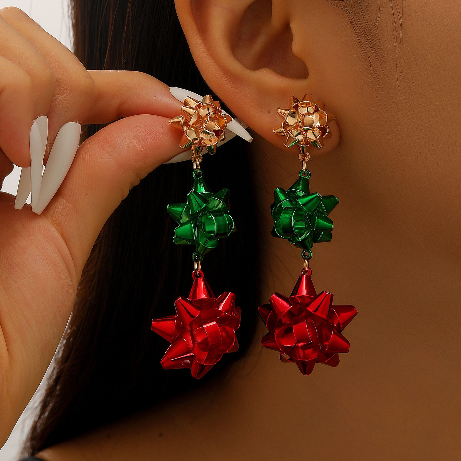 跨境热销圣诞耳饰 百搭欧美圣诞花耳环 复古金属长款花朵耳钉女