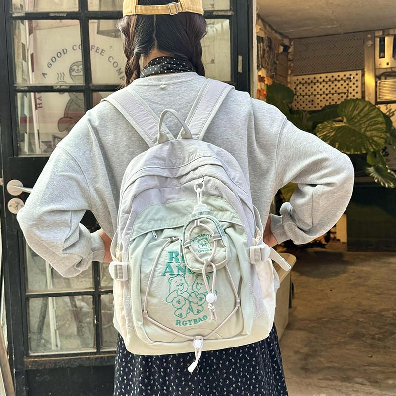 小熊印花书包女大容量初中生高中大学生双肩包日韩流行校园风背包