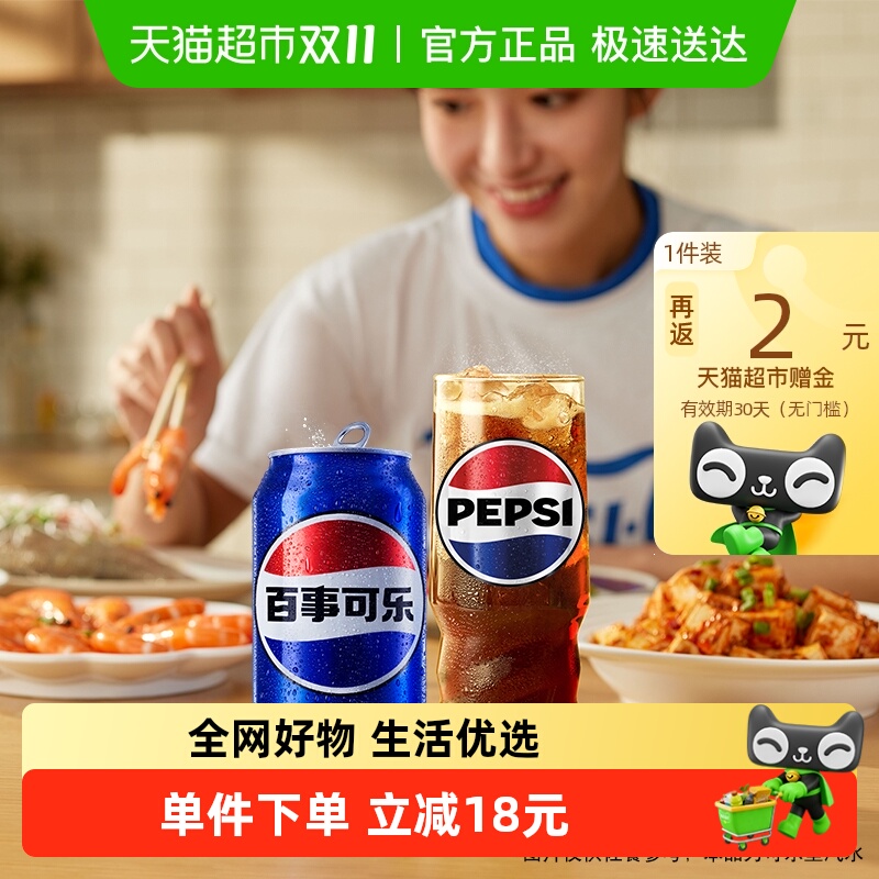 百事可乐原味碳酸饮料整箱批发24罐330ml特价爆款无糖汽水旗舰店