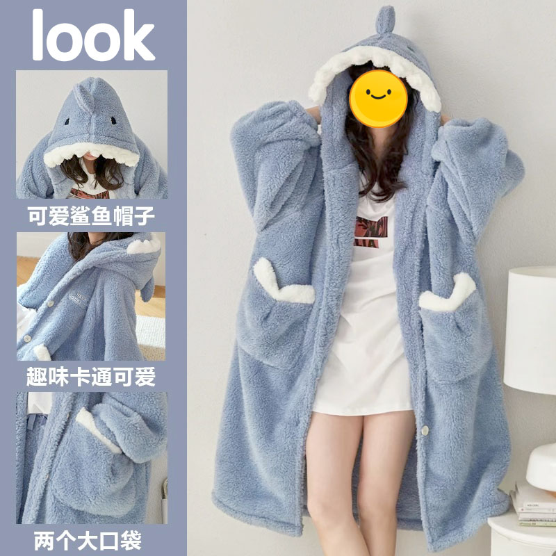 珊瑚绒睡衣冬睡袍女款2025新款高级感男士加厚秋季睡裙鲨鱼家居服