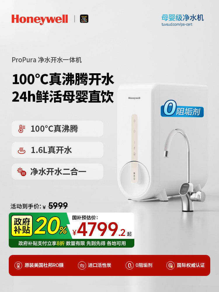 霍尼韦尔净水器净热一体0阻垢剂反渗透母婴直饮饮水机RO800-W