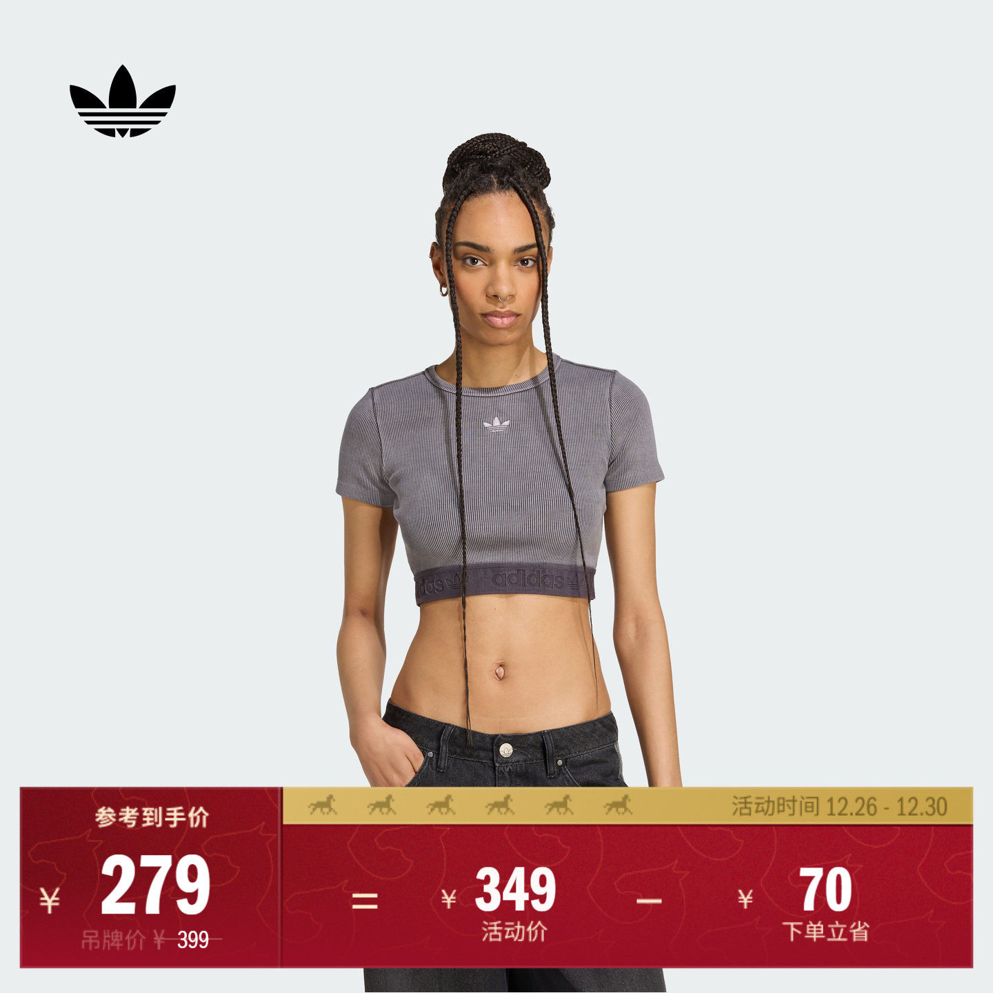 运动修身露脐上衣短袖T恤女装夏季adidas阿迪达斯官方三叶草