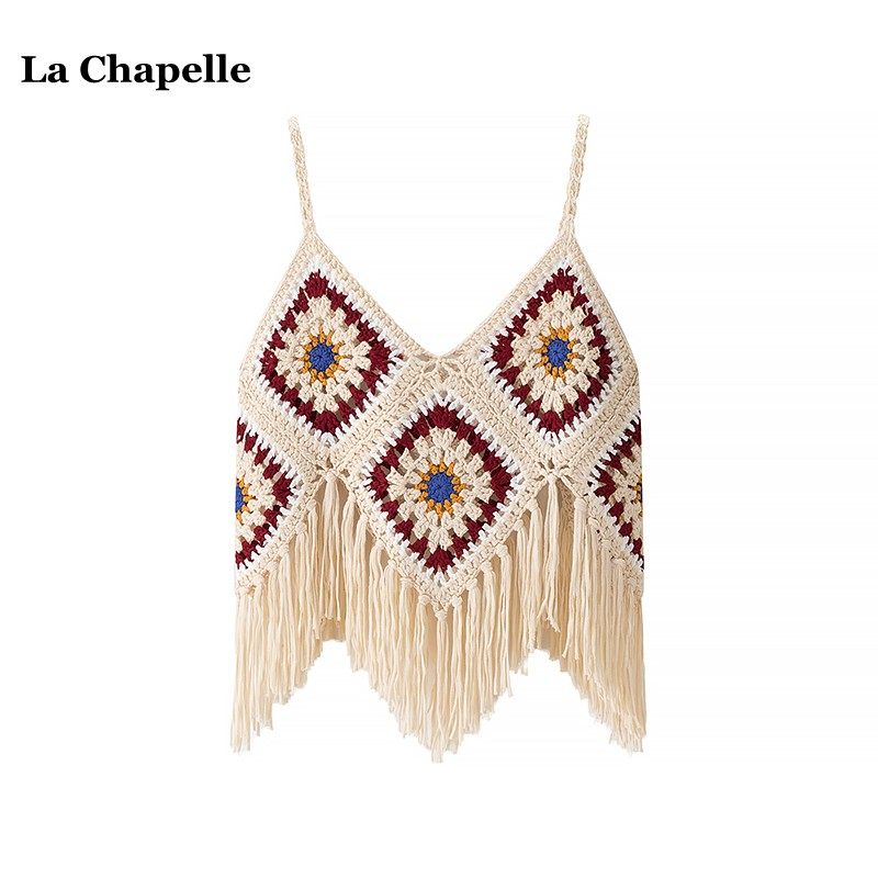 拉夏贝尔/La Chapelle民族风流苏吊带背心女夏季新款镂空露脐上衣