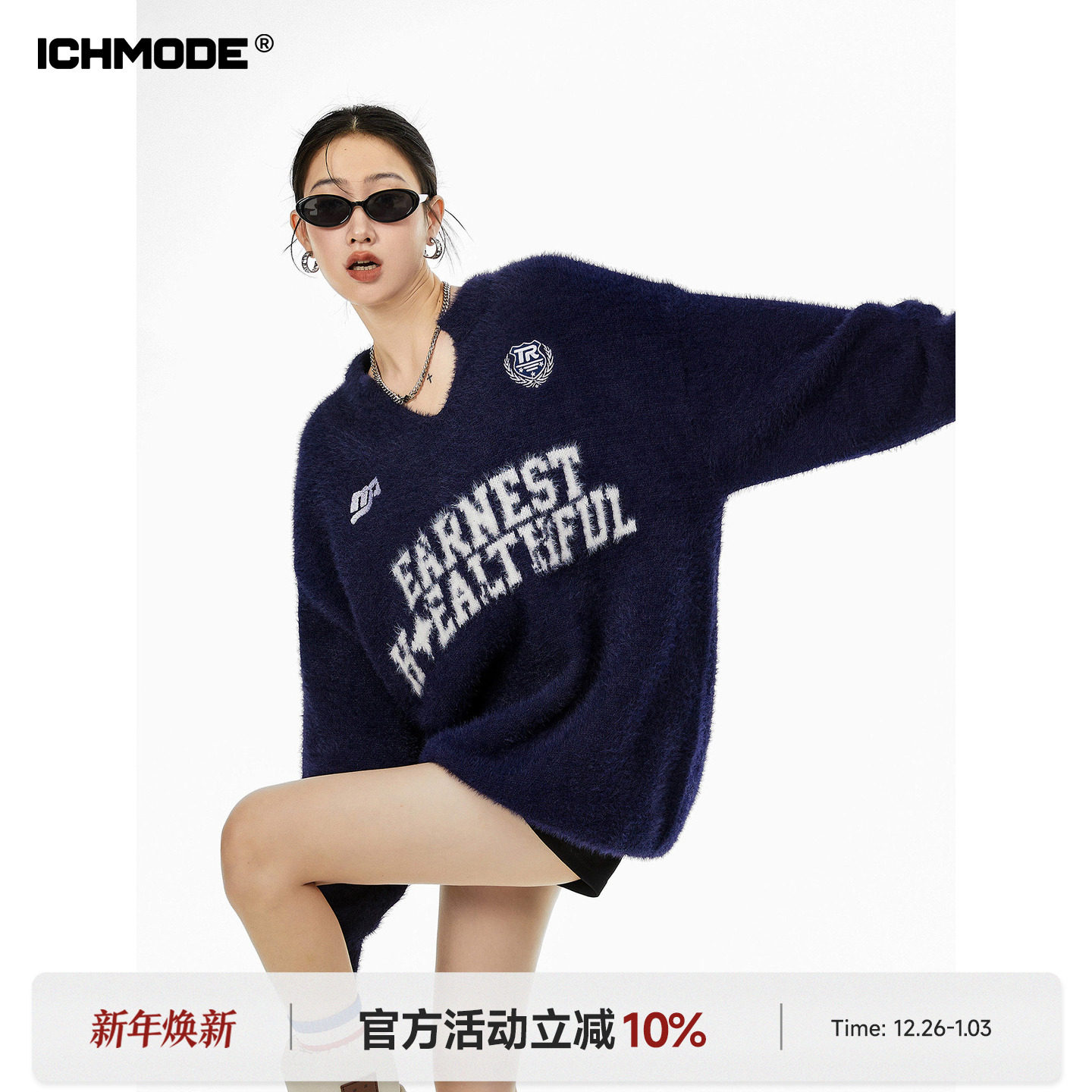 ICH MODE美式复古马海毛毛衣慵懒风女款2026新款冬季宽松上衣外套