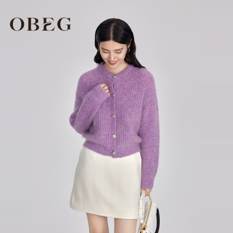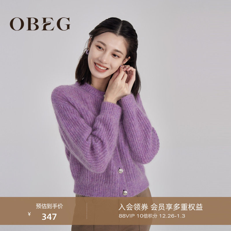 OBEG欧碧倩气质毛衣开衫女年冬款温柔紫色马海毛外套10444191