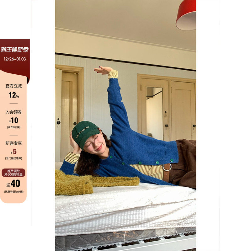 LLANO侧门襟菱格马海毛开衫外套复古英伦学院风气质上衣女秋冬季