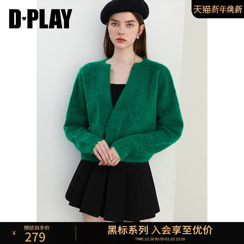 DPLAY【黑标】绿色马海毛毛衣高级感针织衫女士外套气质时尚上衣