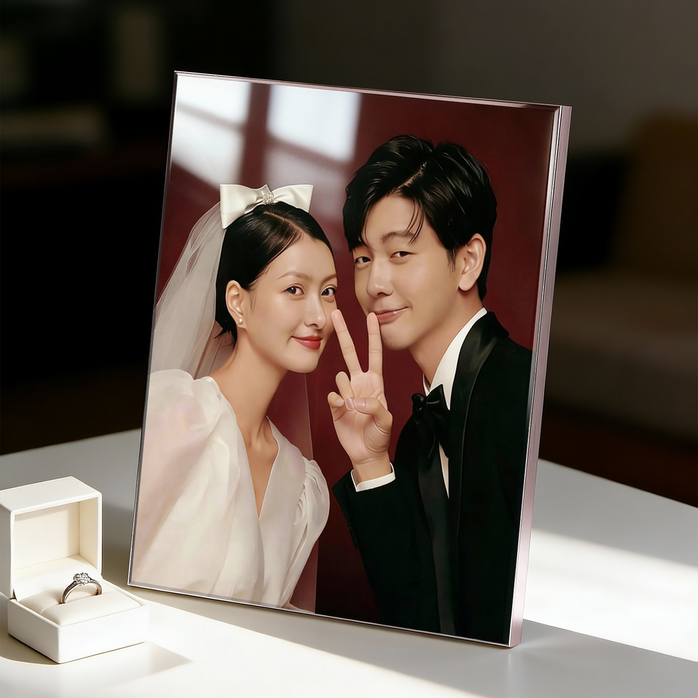 水晶相框摆台加洗照片定制做成高级感婚纱照结婚登记照全家福儿童
