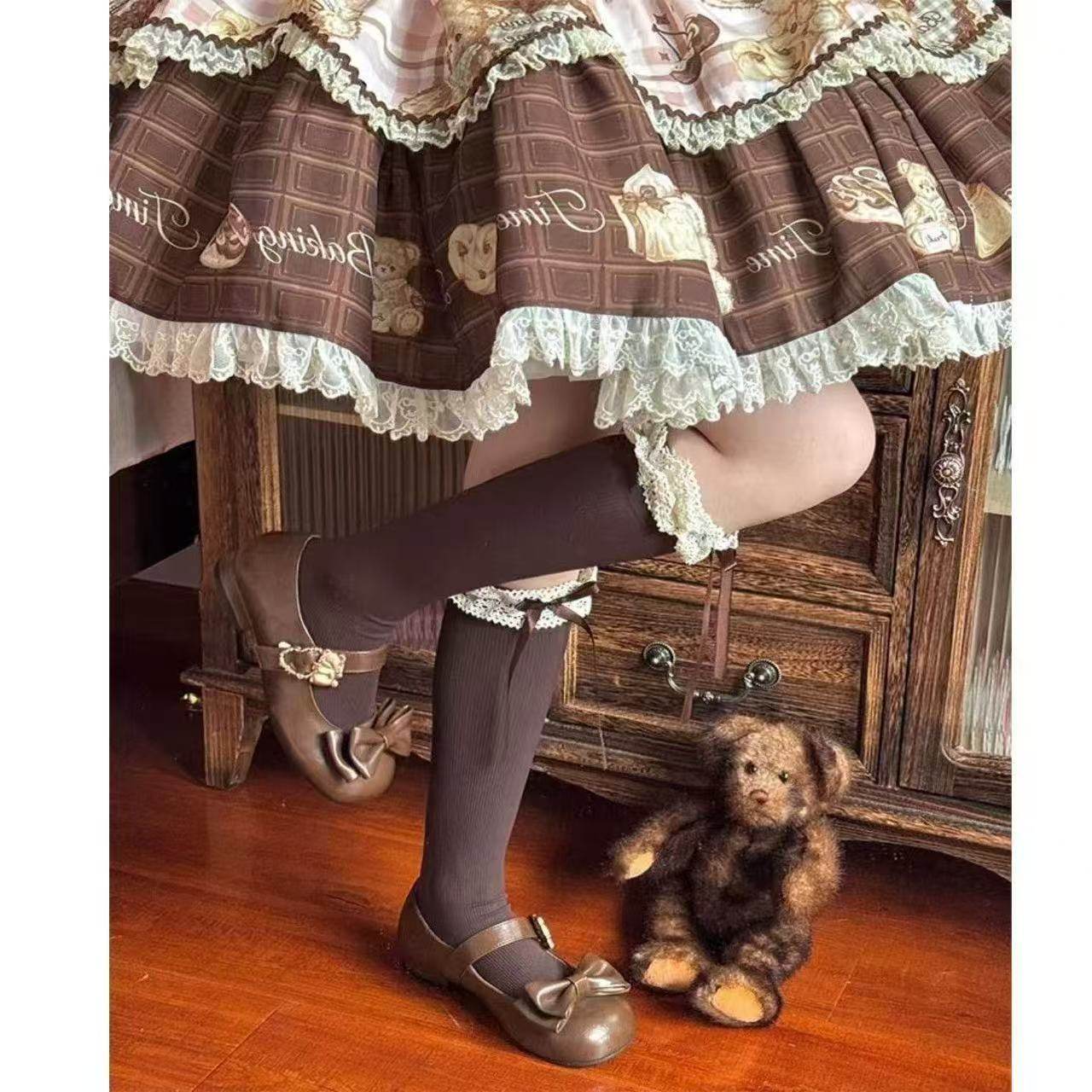 Lolita焦糖可颂同款棕色花边小腿袜小腿袜JK萝莉袜蝴蝶结爆款瘦腿