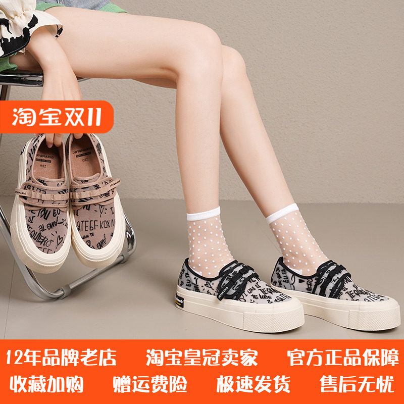 汤姆斯2025夏季蕾丝女鞋厚底增高布鞋碎花网面透气休闲涂鸦玛丽鞋